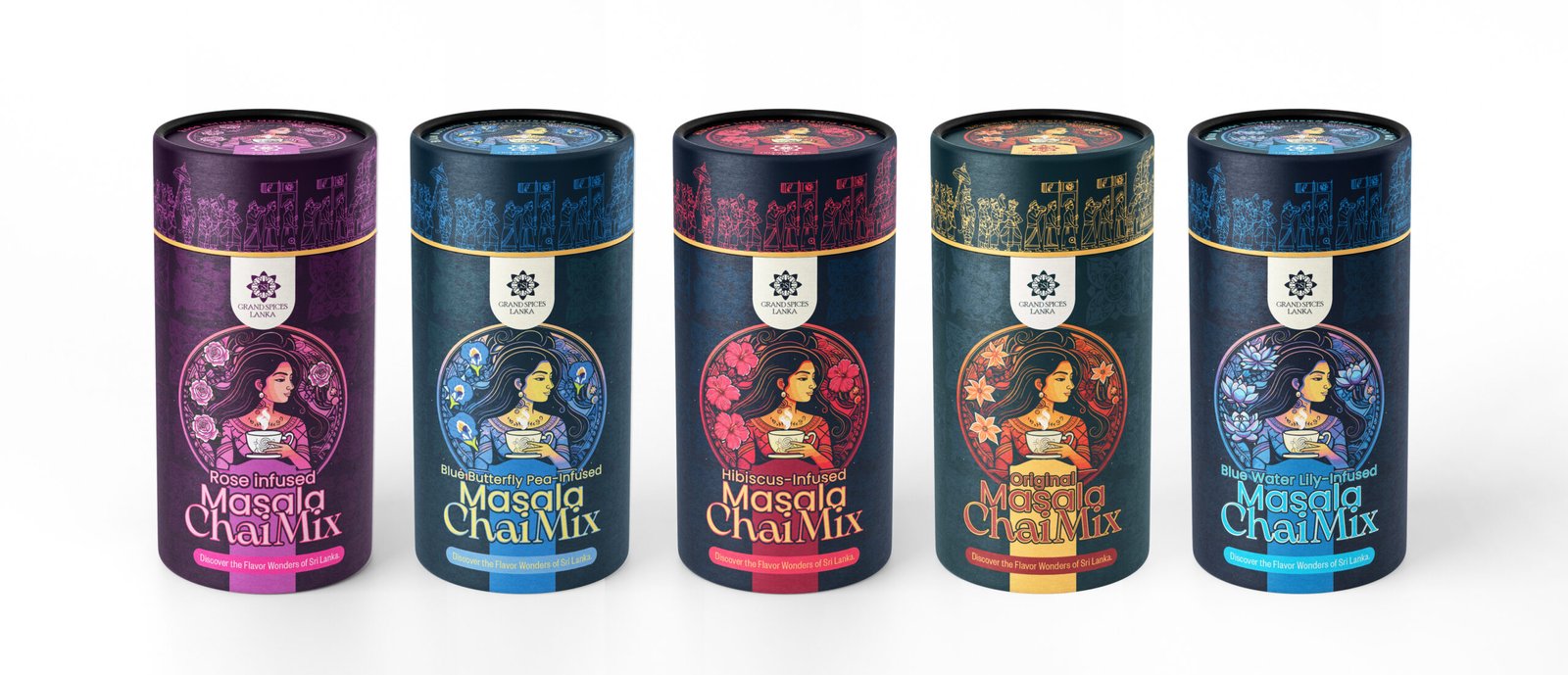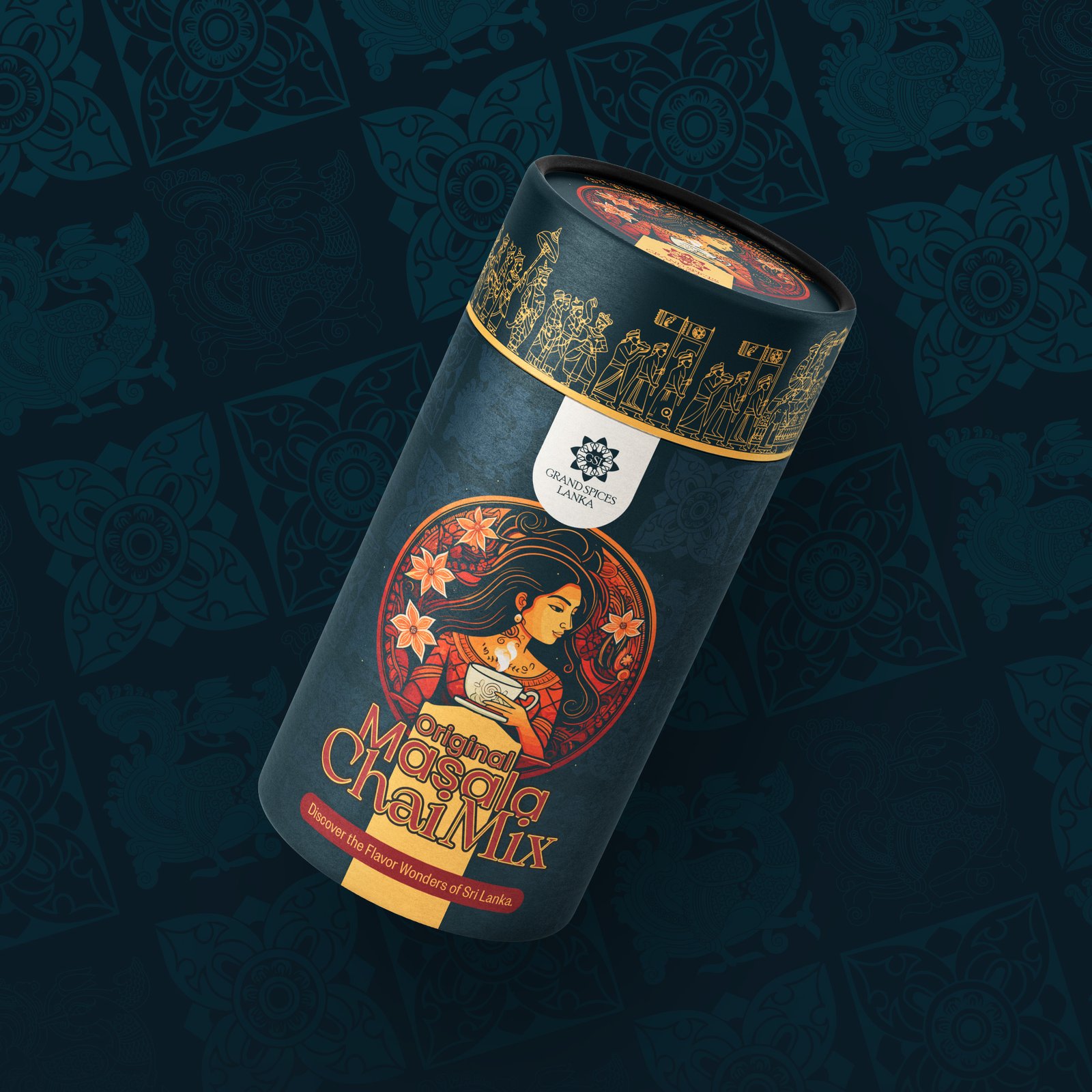 This project aimed to blend cultural storytelling with premium design for a high-end tea export line. The focus was on showcasing the “flavour wonders of Sri Lanka” through a modern lens. We created a bespoke series of packaging featuring bold, jewel-toned backgrounds and detailed illustrations of women from historical Lankan folklore, savoring tea amidst local botanicals. Each variant—from Green Tea with Jasmine to Chamomile & Orange—is treated with its own distinct color and hand-drawn floral frame, unifying the brand while celebrating diversity in taste. The result is a collectible-worthy design that appeals to connoisseurs and gift buyers alike.