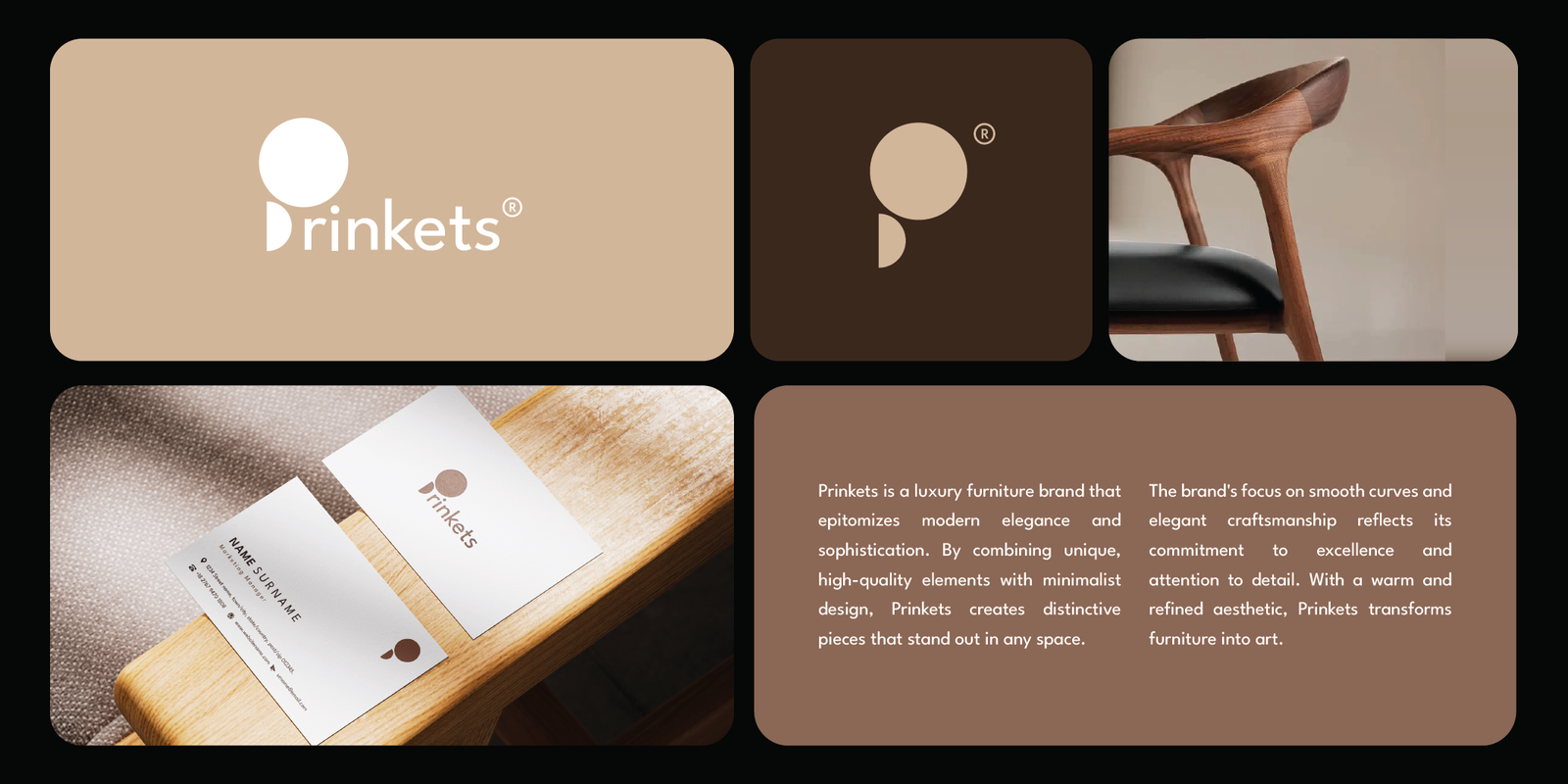 Prinkets is a luxury furniture company specializing in bespoke, handcrafted wooden pieces. The brand needed an identity that communicates both sophistication and craftsmanship. We developed a sleek, high-end branding system featuring minimalist typography and a neutral-toned visual system that highlights product elegance. Every detail—from the logo to the product displays—was designed to reflect exclusivity and artisanal excellence, positioning Prinkets as a top-tier name in luxury interiors.
